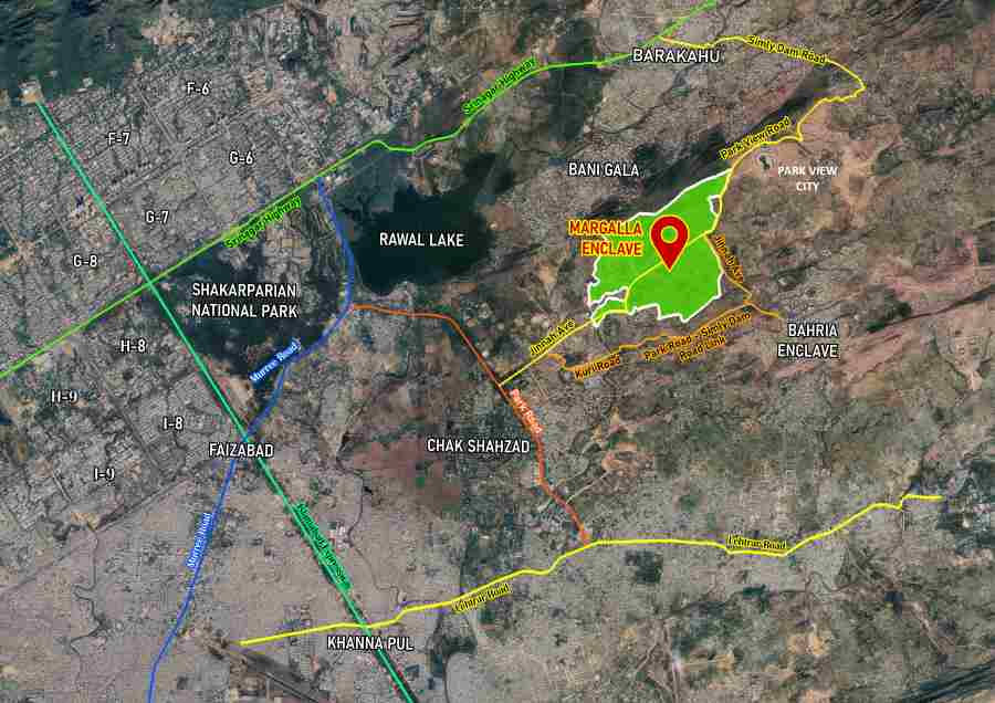 DHA Margalla Enclave enjoys an exceptional location near the Margalla Hills, offering breathtaking views, fresh air, and proximity to key city zones. Situated adjacent to D-12 and E-11 sectors, the project provides quick access to Islamabad’s main arteries — including Margalla Avenue, GT Road, and Kashmir Highway.